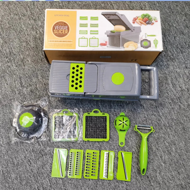 Cortador multifuncional de verduras con 14 accesorios especializados para optimizar tus preparaciones culinarias. Combina cuchillas de aleación de alta precisión con estructura de acero inoxidable 402 y cuerpo ABS resistente. Su diseño versátil permite trabajar con diversos tipos de vegetales y frutas, garantizando cortes uniformes y consistentes. Ideal como regalo para profesionales de la cocina y entusiastas culinarios que valoran eficiencia y durabilidad en sus herramientas.