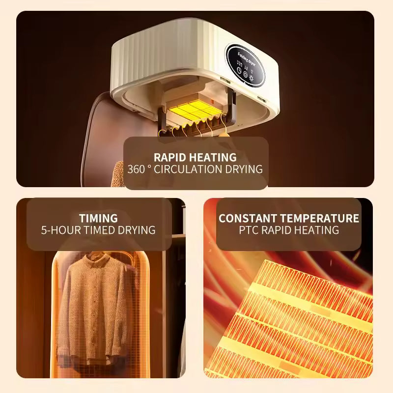 Cuenta con temporizador inteligente de 1 a 8 horas, funcionamiento silencioso y sistema de corte automático de energía para mayor seguridad. Su diseño portátil lo hace perfecto para dormitorios, departamentos pequeños, viajes o camping. Además, esteriliza y elimina olores, ahorrando energía, tiempo y dinero, y es fácil de almacenar cuando no se usa.